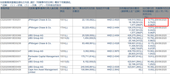 新浪港股讯 6月12日消息,根据联交所资料显示,摩根大通先于上周五(5日)减持华电福新(00816)3222万股或1.26%,每股平均价2. 4484港元,涉资7889万港元;及后又于本周一(8日)增持2214万股或0.86%,每股平均价2.4523港元,涉资5429万港元,最新持股量为5.77%。而瑞银则于上周五按每股2.4494港元,增持华电福新2053万股,涉资5029万港元,持股量增至16.59%。