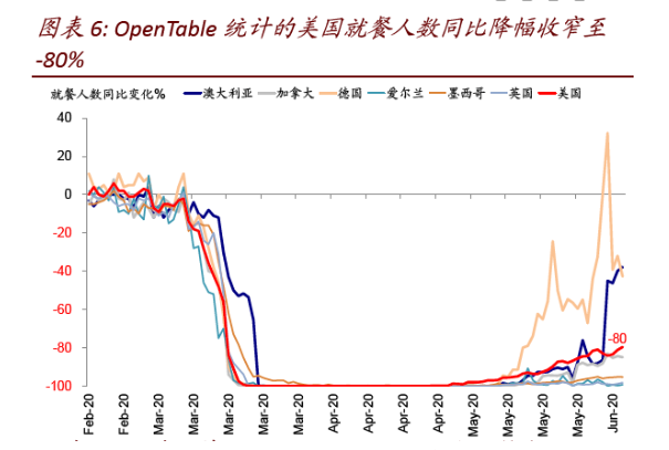 从复工后效果上看,1)自驾出行相关恢复较快,美国机动车汽油消费同步降幅已经收窄至-20%,Apple地图路线自驾请求量也已经恢复到年初水平的85%左右,对应降幅~-15%;2)餐饮相对落后,OpenTable统计的美国就餐人数同比降幅收窄至-80%;3)航空等旅行恢复较慢,TSA安检乘客人数同比降幅收窄至-85%;4)酒店预定,按不同需求,目前回升至年初水平的~-40~60%不等。