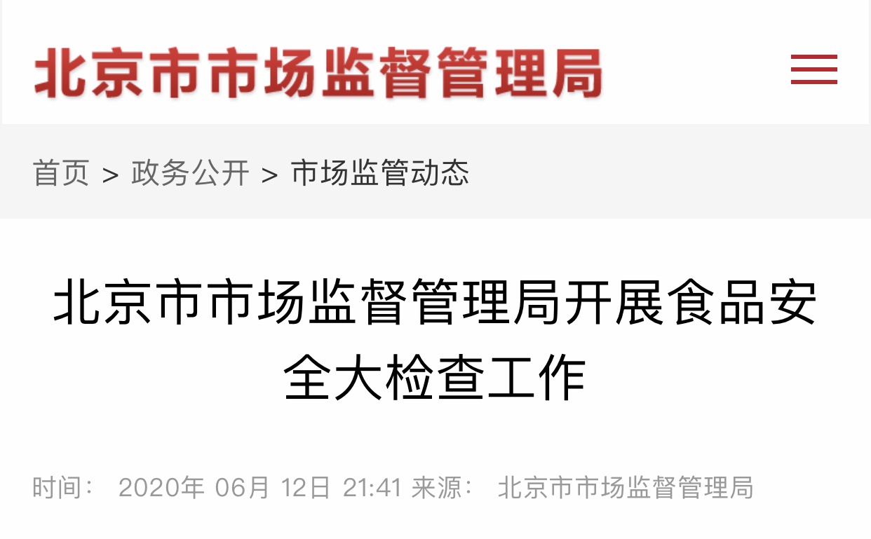 针对新型冠状病毒感染的肺炎疫情防控新形势新要求,6月12日晚,北京市市场监管局发出开展食品安全大检查工作的通知。