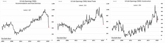 看看最新的美国劳工部职位空缺及劳动力流动调查(JOLTS),职位空缺持续下降,这表明最初的重新招聘可能只是一次性的增长。