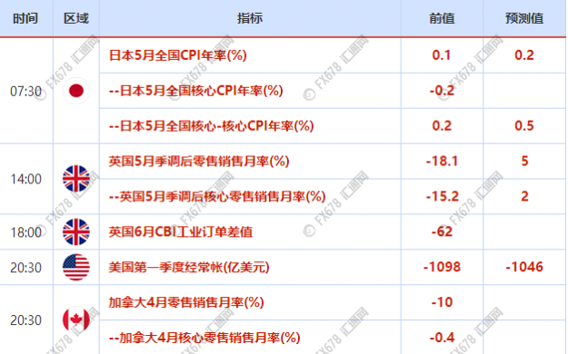 周五(6月19日)关键词:日本5月CPI,英国5月零售销售,美国第一季度经常帐,加拿大4月零售销售