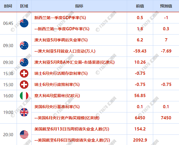 周四(6月18日)关键词:新西兰第一季度GDP,澳大利亚5月失业率,OPEC+举行部长级监督委员会会议,欧盟峰会举行,英国央行公布利率决议以及货币政策会议纪要