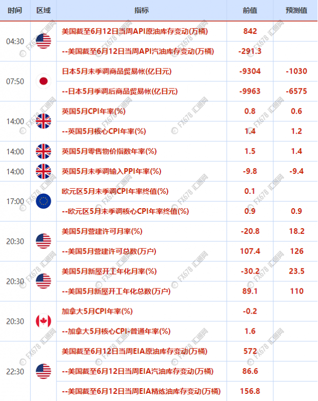 周三(6月17日)关键词:日本5月贸易帐,英国5月CPI年率,加拿大5月CPI年率,OPEC月报