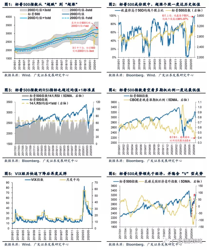 联储‘宽松无底限’的背后,美股快速反弹并进入‘超买’状态,但美国复工加速、‘宽松依赖症’的幻觉效应依然强效,市场的分歧并没有伴随高估和波动增加而消失。站在估值屡创新高之际,美股市场‘超买’的状态是否会持续,对于风格又有何影响?本周我们延续前期关于海外波动的讨论,就美股的后续走势进行详细剖析。