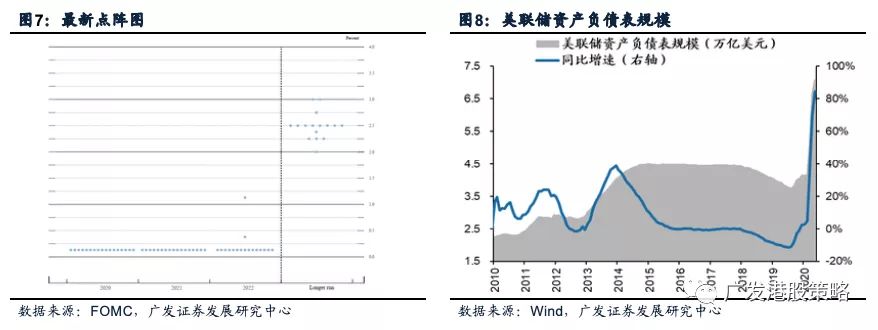 (1) 利率政策:宽松的基调维持不变。预计联储将在较长时间内维持低利率水平, ‘散点图’显示当前低利率水平将持续至2022年,鲍威尔表示‘甚至还没考虑过考虑加息’;
