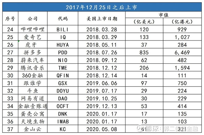 我们不去探讨是否为创新产业公司,列出其中可能的一些中概股。除百济神州(06160.HK)已在香港作主要上市、阿里巴巴(09988.HK)已经在港交所作第二上市、网易(09999.HK)、京东(09618.HK)也已经在香港陆续二次上市,剩下的还有37家。具体如下: