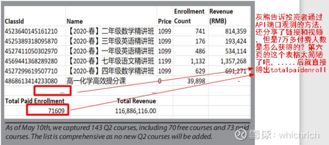 (2)灰熊的报告逻辑根本不严谨,数据也不够全面,灰熊告诉投资者可以通过API端口观测的方法,还分享了链接和视频,但是7万多付费人数是怎么获得的?报告里第六页的那个表格实在太简陋了吧,.....后就直接得出total paid enrollment,灰熊说跟谁学造假,我们怎么知道灰熊本身会不会造假呢