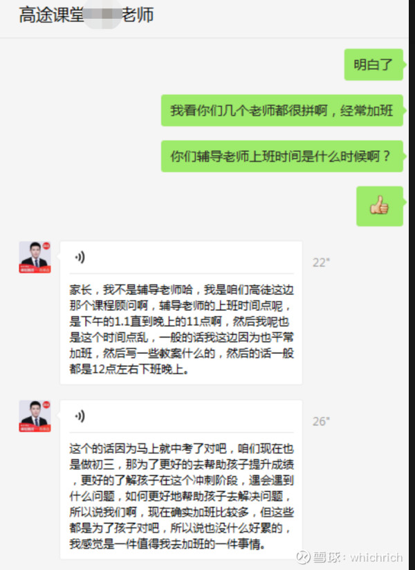 这点很容易去感知,都去各家公司转转就知道了,团队加班情况和狼性文化完全不同,并且跟谁学的辅导老师(销售)上班时间普遍比同行要晚一小时,而且经常加班到一点,第二天一早还早早回复信息,可见其团队充满了创业企业的基因和精神。
