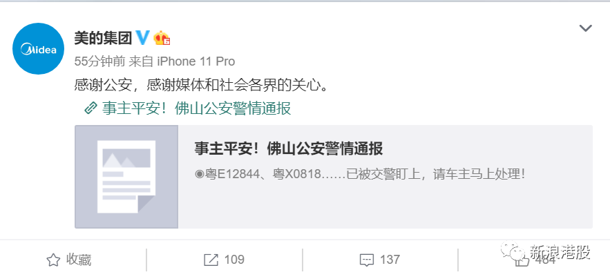 美的集团官微随后转发上述通报称,感谢公安,感谢媒体和社会各界的关心。