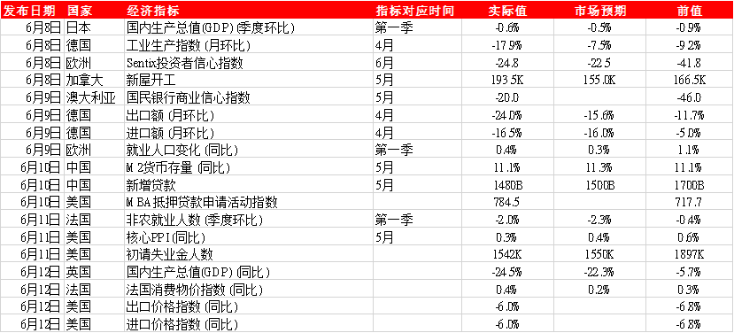疫情主导了上周的风险资产市场,资金趁机获利回吐,S&P500及全球多数股市录得三月股灾以来最大的单周跌幅。上周两件大事件,一是联储主席鲍威尔为美国经济复苏前景画出了悲观之图,周四美股大跌。联储在六月政策会议上决定按兵不动,更通过前瞻性指引预言联储利率在2020年底以前都不会被上调,这给市场中部分期待V型经济复苏的人浇了一盆冷水,也给飙升的美国股市浇了一盆冷水。二是在担心美国第二波疫情并拖累风险资产走势后,北京3日连增43例新冠确诊病例,已经处于非常时期,令投资者加深了对疫情的担忧,担心期待中的经济重启可能出现曲折,避险情绪随时重新成为市场的主导。