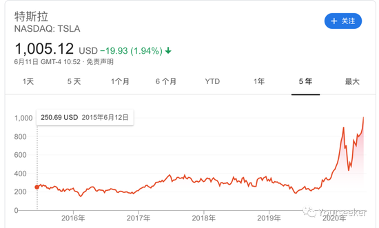 我确信,那时根本没人能想到,仅仅半年之后,特斯拉能成为全球市值最高的汽车公司,而且,它的股价居然这么快突破四位数,来到 1000 美元。