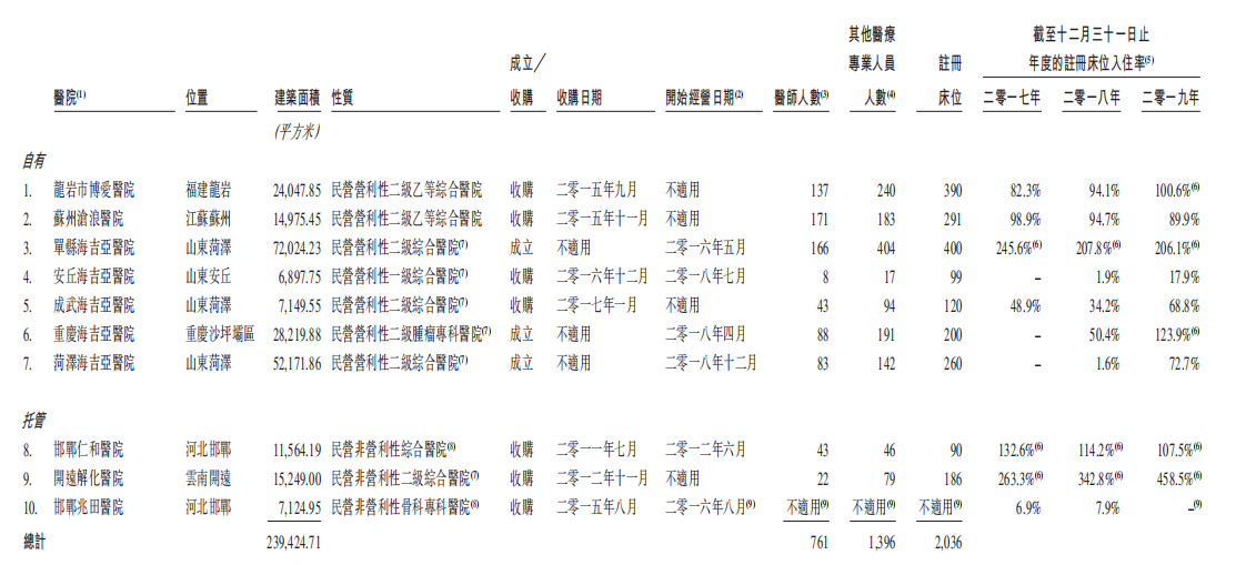 海吉亚医疗拥有自有医院7家,托管医院3家
