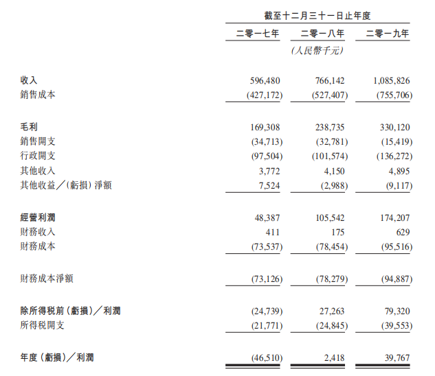 公司的收入由2017年的人民币5.965亿元增加至2019年的人民币10.858亿元,复合年增长率为34.9%。经调整净利润由2017年的人民币4850万元增加至2019年的人民币1.715亿元,复合年增长率为88.0%。