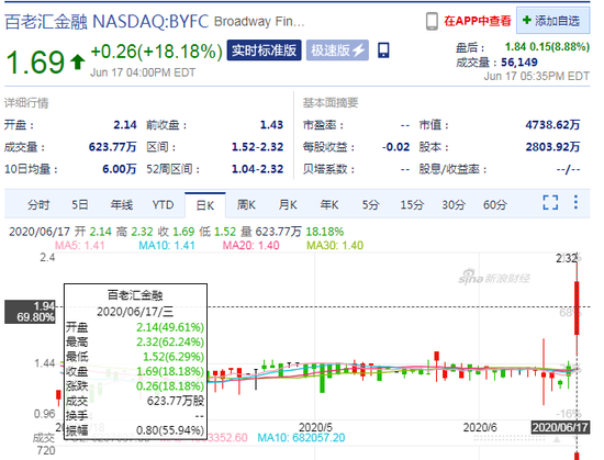 黑人控股的百老汇金融(Broadway Financial)在今天最高上涨超过62%,该公司创始人为 Elbert T. Hudson and Paul Hudson,该公司目前管理者为威恩-肯特,是一位非裔美国人。