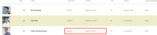 不过,京东的市值亿港元,折合美元,而同时期的拼多多市值则高达亿美元,比京东多了近100亿美元。随着拼多多市值的增加,黄峥的个人身家也是不断增长。截至今日收盘,黄峥身家已经高达429亿美元,为中国第三大富豪,大约3个刘强东的身家。