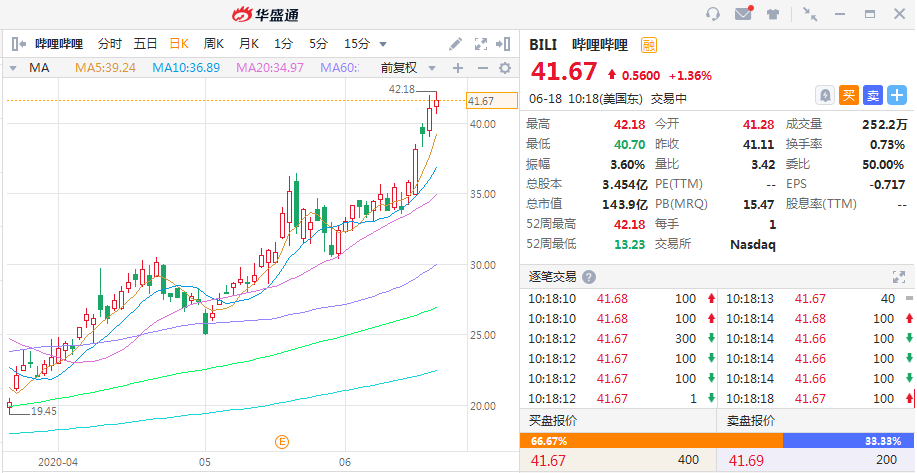 哔哩哔哩一度涨超2%,盘中再次刷新历史;斗鱼、携程、欢聚时代、网易、百度、达达、腾讯ADR涨超1%。