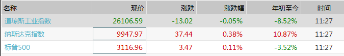 延续17日美股的震荡走势,周四美股三大指数开盘低开,随后呈现震荡波动,截止目前,道指有所微跌,标普500、纳指翻红。