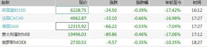 再看欧洲股市市场,法国CAC40指数、德国DAX指数、意大利富时MIB指数、英国富时100指数、俄罗斯MOEX指数等均出现微跌。