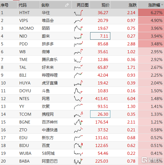 此外,中概股板块方面,其中,热门中概股多数上涨,华住涨超6%,据媒体报道,华住打算回港二次上市,最快计划今年底回港上市;蔚来涨超5%,唯品会、陌陌、微博、拼多多等有所上扬。