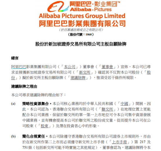 公司指出,建议除牌是基于策略性资源集合,保留在联交所的单一第一上市地位,可令公司集中资源发展中国业务,并有机会提高在联交所的股份成交量;简化合规责任,减除与新交所规定相关的行政开支及合规责任,可降低法务风险及合规成本;另外,新交所成交量低,令双重上市安排缺乏协同效益。