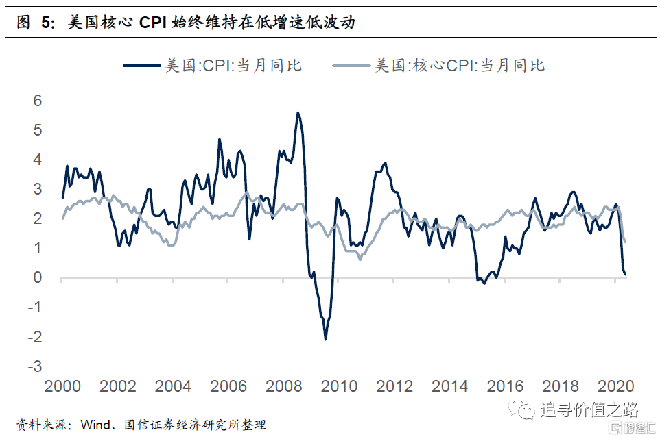 正是由于过去这么多年中我们几乎已经看不到很显著的通货膨胀,当前无论是政府、研究机构、还是市场投资人士,普遍的一致预期都是通货膨胀在较长时期内都很难明显看到,而类似“赤字货币化不会带来通货膨胀”就是典型的观点。