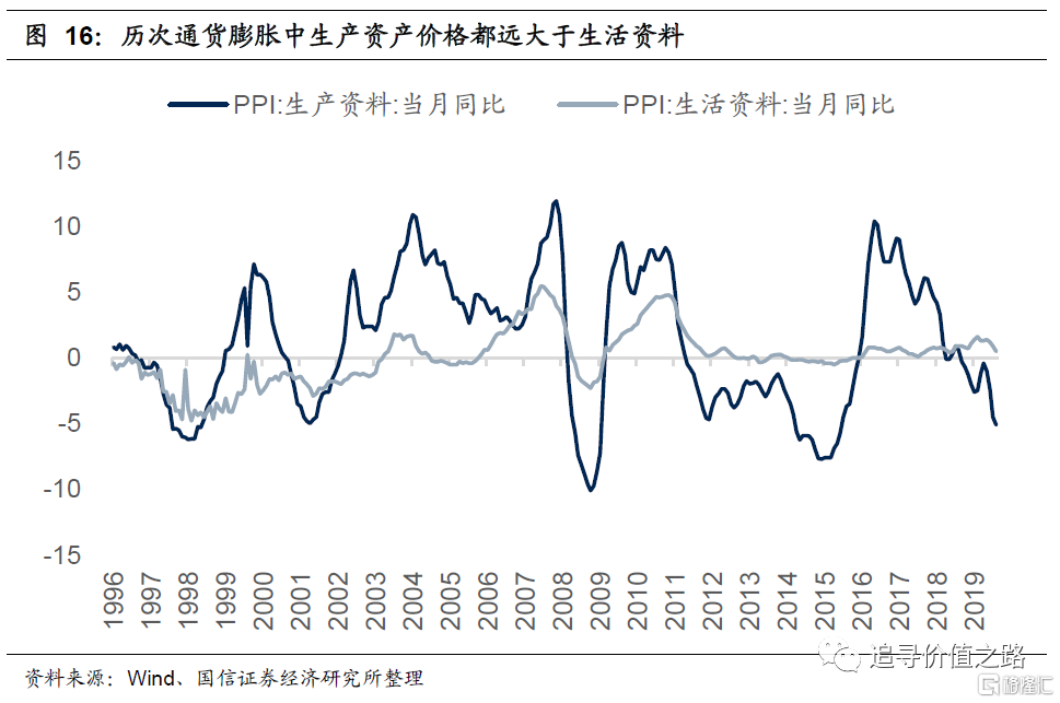 如果通货膨胀(名义增速)真的起来,该配置什么品种?从历史经验看,消费股是不抗通胀的,历次通胀过程中,受益于通胀的都是上游的资源性品种,包括农业、有色、能源等。