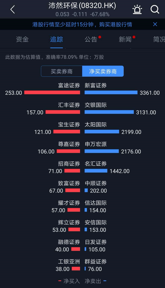 根据券商持仓,本次卖出最多的是新富证券、交银国际等,经纪商砸盘量巨大。截至发稿,沛然环保已成交2.12亿股,换手率高达16.7%。(文/金石)