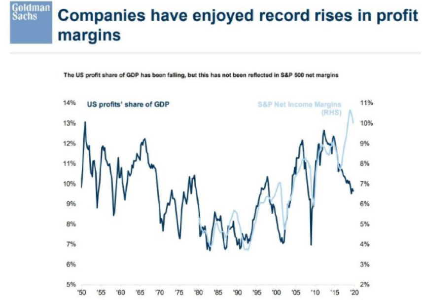 在这封信件中,桥水基金的分析师写道,股票相对于现金的超额回报中很大一部分来自利润率。但受到当前美股公司收益周期性下滑的影响,未来超额回报或面临转变。他们比较了标普的利润率与真实的企业利润,甚至在冠状病毒大流行爆发之前,真实的企业利润就已跌至10年来的低点。