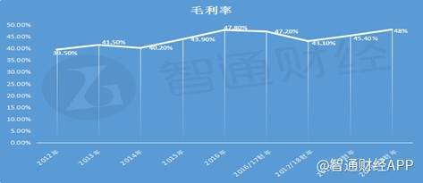 由于生产成本下降,期内中国旺旺毛利率提升2.6个百分点至48%,达到近8年最高水平。(注:中国旺旺董事会于2017年8月22日决议把公司财政年度年结日由12月31日更改为3月31日。)