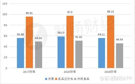 2019财年,公司米果类取得收益56.11亿元,同比下降3.5%;乳品及饮料类收益达到98.1亿同比增长0.9%;休闲食品类实现收益46.342亿元,同比下降9.2%。其中,乳品及饮料实现增长主要受益于占比达到90%以上的“旺仔牛奶”同比增长1.9%。