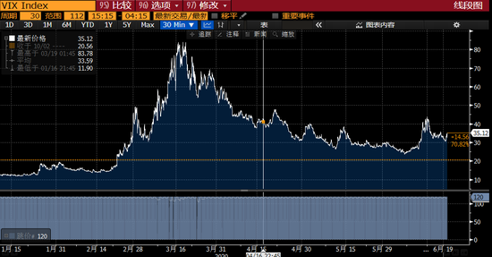 VIX指数较上周收低2.7%至35.12点,为6月12日以来最高水准。