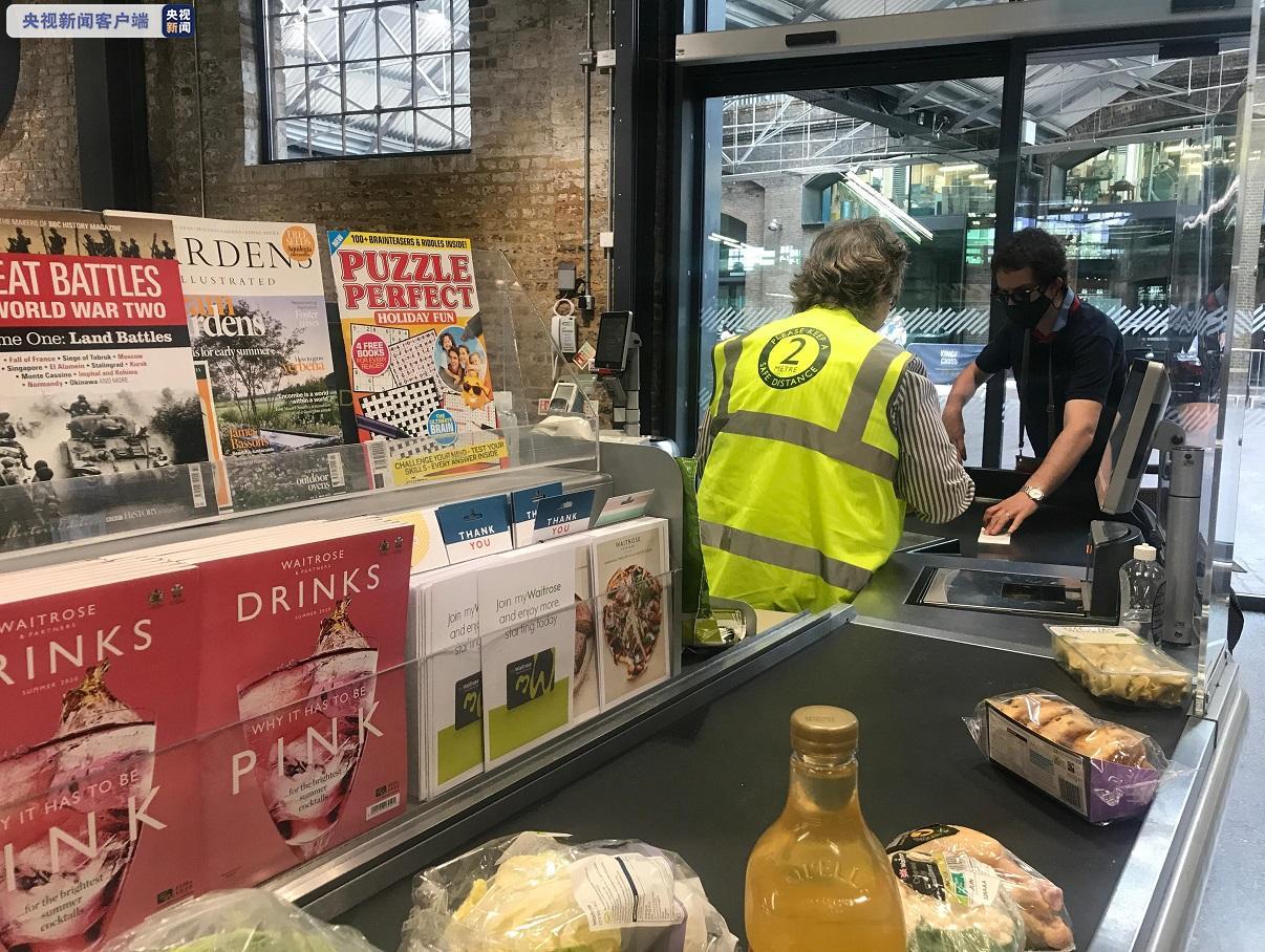 这是一家由灯具店改成的蔬菜零售店,店员是附近一家餐馆的员工。疫情期间,英国人的生活里有了许多新的变化,售卖食品的食杂店特别受到人们的欢迎。