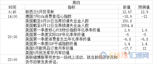 同时关注美国5月核心PCE数据。作为美联储观测通胀的指标,在全球经济面临通缩风险之际,该指标不断下滑可能意味着美联储将长时间维持低利率政策并扩大刺激措施。