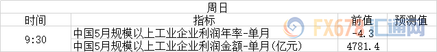 周日(6月28日)关键词:中国5月规模以上工业企业利润