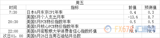 周五首先关注美国5月个人支出月率,作为衡量消费的关键指标,该数据将显示消费的复苏程度。