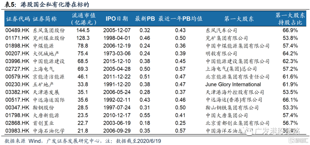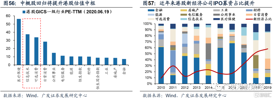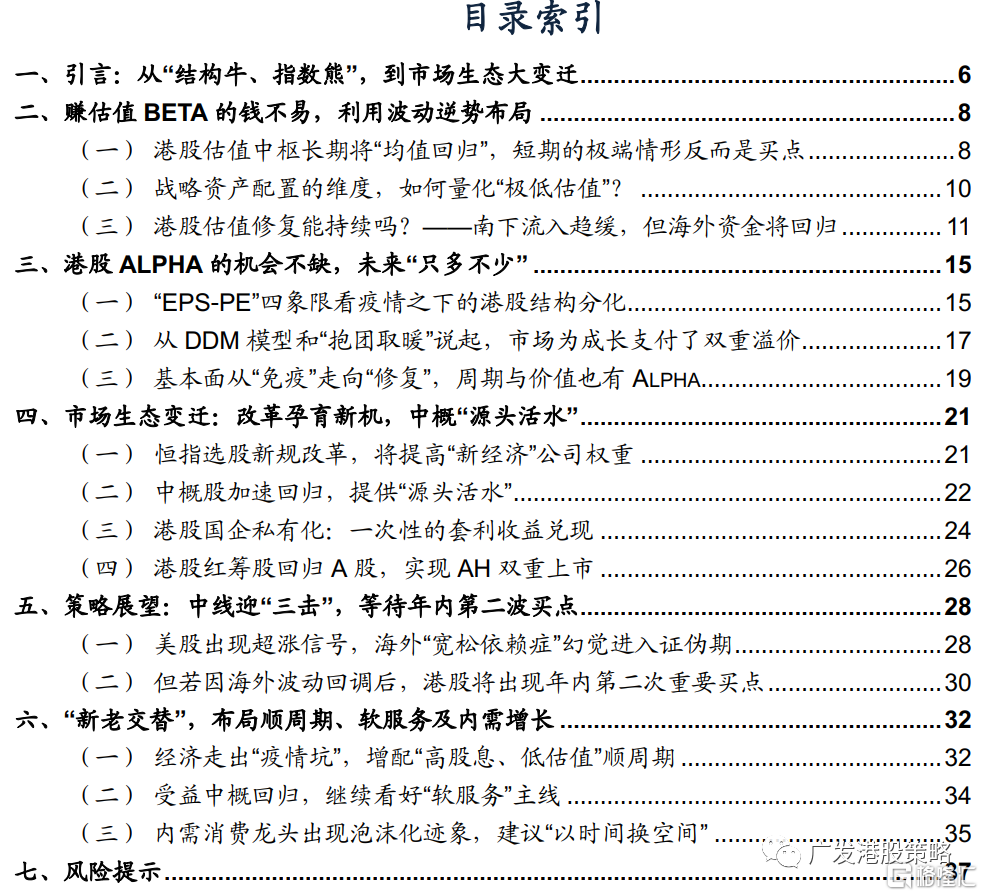 (4)就市场生态和结构变迁而言,过去一年内港股市场改革开始进入“收获期”,指数选股新规、国企私有化、红筹回归A股进程加速,使得港股中长期估值中枢面临一次系统性提升的机遇;加之中概股“回归潮”开启,“金融地产周期+腾讯”的指数成份有望被纳入更多“新经济”元素。