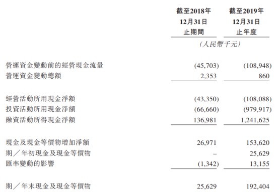 于往绩记录期,公司的营运产生负现金流量净额,主要由于公司的研发开支所致。于往绩记录期,公司依赖股权融资作为主要流动资金来源。
