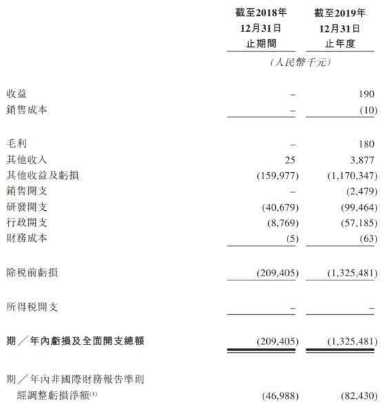 公司的亏损及全面开支总额由2018年的人民币2.09亿元增加至2019年的人民币13.25亿元。亏损净额增加主要由于按公平值计入损益的金融负债公平值亏损因发行优先股及购股权及公司估值等而增加人民币10.36亿元。