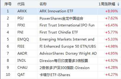 排名第二的PGJ,则是聚焦于中概科技股,上周热点中概股的优秀表现将其推升了7.62%。