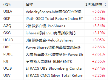 而7月交割的白银期货价格上周上涨约2.1%,大幅高于黄金。因此,上周商品ETF中,白银相关ETF表现也大幅跑赢了黄金ETF。