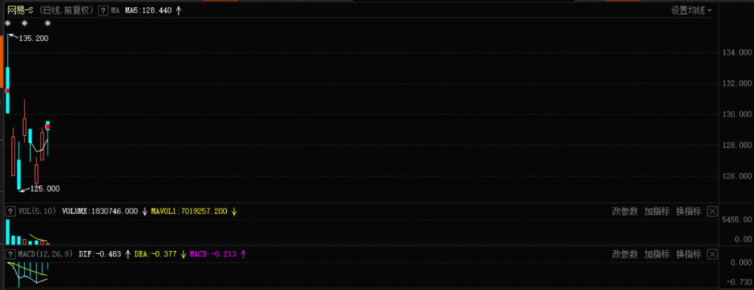 网易港股首个交易日开盘价133.00港元,出现轻微下跌后,7个交易日一直维持震荡。