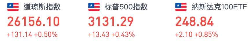 美股周二收涨,纳指及多只科技股均创盘中与收盘历史新高。冠状病毒疫苗研发前景乐观、国际贸昜紧张关系趋缓,令市场得到支撑。美财长姆努钦称年底前可能走出衰退。道指收盘上涨0.50%,报26156.10点;纳指涨0.74%,报10131.37点;标普500指数涨0.43%,报3131.29点。