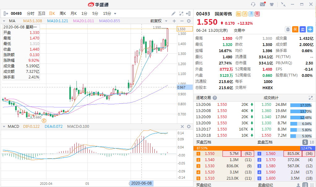 黄光裕概念股集体飙升,港股国美零售、国美金融科技涨12%。A股中关村封涨停。