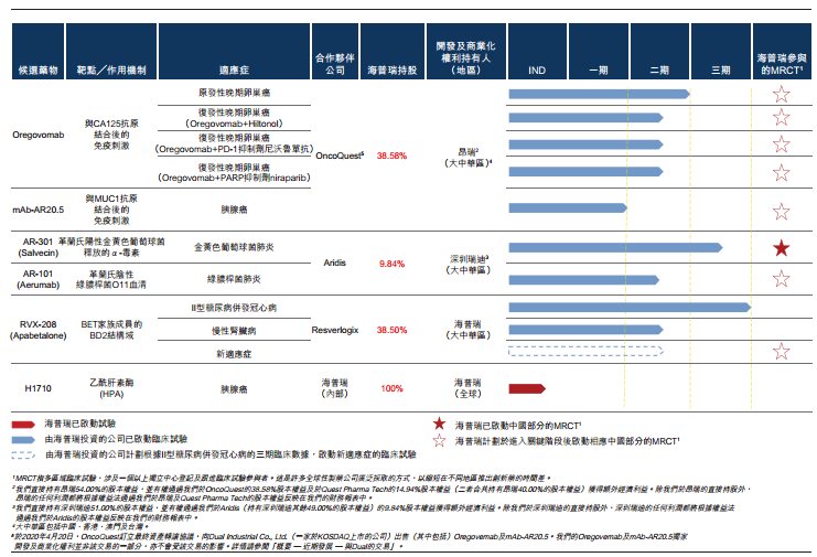 创新药投资领域主要集中在心血管、 NASH(非酒精性脂肪性肝炎)和肿瘤,截至最后可行日期,公司已经获得五项候选药物在大中华区的独家开发及商业化权利。