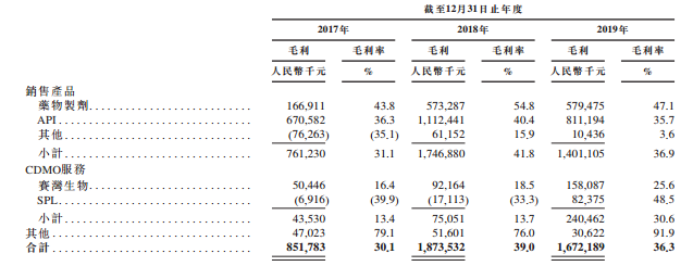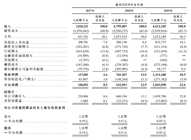毛利润为主营收入减去销售成本。海普瑞的毛利率为毛利润占海普瑞主营收入的百分比。截至2017年及2018年以及2019年,海普瑞的毛利润分别为人民币8.52亿元、18.74亿元、16.72亿元,而海普瑞的毛利率分别为30.1%、39.0%、36.3%。