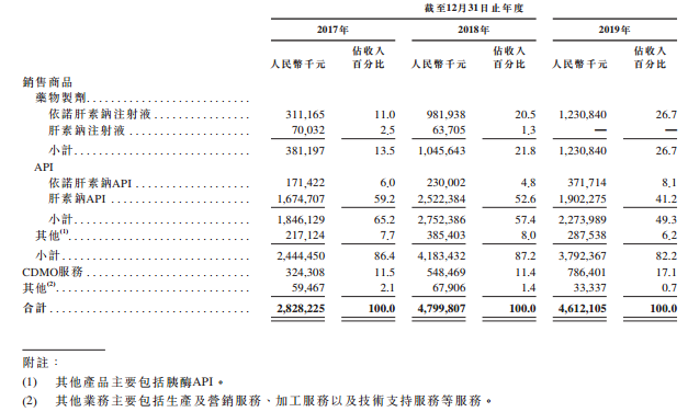 根据弗若斯特沙利文的资料,按2018年收入计,海普瑞CDMO业务位居中资前三大生物制剂CDMO运营商之列。海普瑞近三年CDMO业务收入增长迅速,从2017年的人民币3.24亿元增加69.1%至2018年的人民币5.49亿元,并增加43.4%至2019年的人民币7.86亿元。