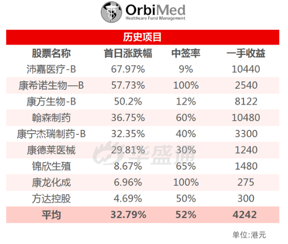 奥博资本此前也曾作为基石认购沛嘉医疗-B、康方生物-B、翰森制药等医疗医药股。纵观过往标的上市首日表现,平均上市首日涨幅达32.79%,上涨率100%。奥博资本的过往投资眼光也值得投资者们参考。