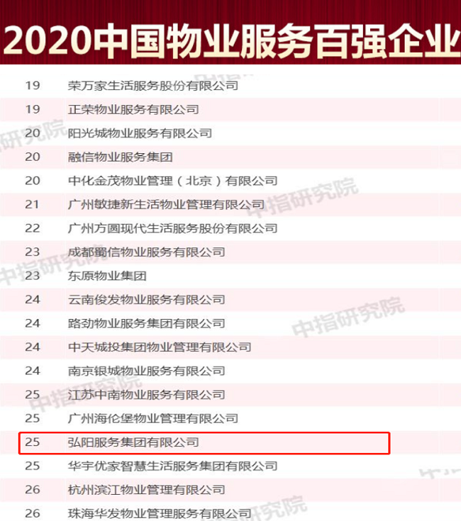在2020年江苏省物业服务百强企业中排名第三,在2020年物业服务百强企业中排名第25位