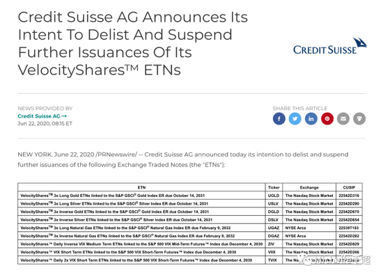 另外,大家留意下 TVIX要退市了, 瑞士信贷会在7月初将9只指数基金正式退市.图里列出来所有要退市的ticker, 大家可以快看看有没有还持有的。退市前估计会有一番爆炒。大家谨慎风险。
