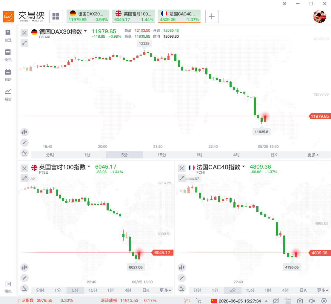 北京时间周四下午,有消息称德国最高法院驳回了有关欧洲央行量化宽松计划的单独诉讼,理由是不予受理。消息传出后,欧股纷纷扩大跌幅,英国富时100指数跌1.44%,法国CAC40指数跌1.37%,德国DAX指数一度跌超1%。
